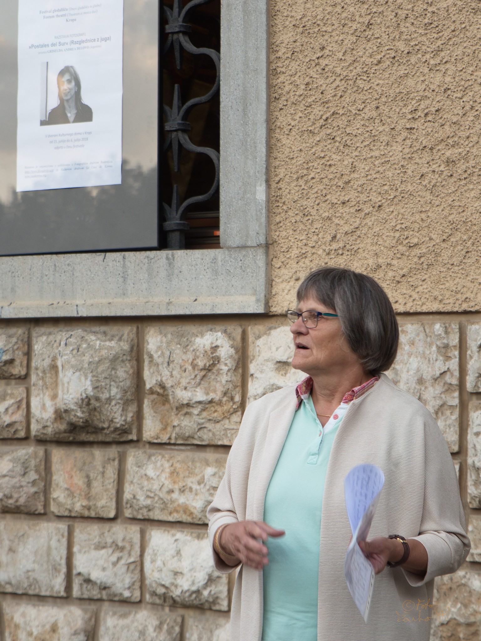 V sklopu Festivala gledališča, ki se odvija v dvorani Kulturnega doma v Kropi od 15. 6. do 6. 7. 2018, razstavlja svoje fotografije Griselda Andrea Delovo iz Argentine. Predstavlja se s fotografijami Argentine in Brazilije. Naslov razstave fotografij je »Postales del Sur« (Razglednice z juga). Avtorica daje, z dobrim občutkom za kompozicijo, poudarek predvsem na značilnost rastlinskega sveta, pokrajine in mest ter v njihovo medsebojno vpetost. Več o svojih fotografijah pove avtorica sama v svoji predstavitvi.