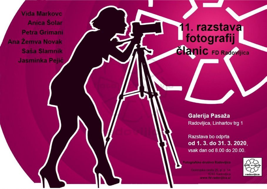 V mesecu “Marcu”, ko ženske praznujemo svoj praznik, so se letos enajstič s fotografsko razstavo predstavile članice Fotografskega društva iz Radovljice. Fotografije prikazujejo ustvarjalnost iz ženskega zornega kota. Kot je povedala dolgoletna članica Anica Šolar, je pred več kot desetimo leti pobudo dala članica društva, sedaj že pokojna Marija Ana Globočnik. Letos razstavljajo: Petra Grimani, Vida Markovc, Ana Žemva Novak, Jasminka Pejić, Saša Slamnik in Anica Šolar.