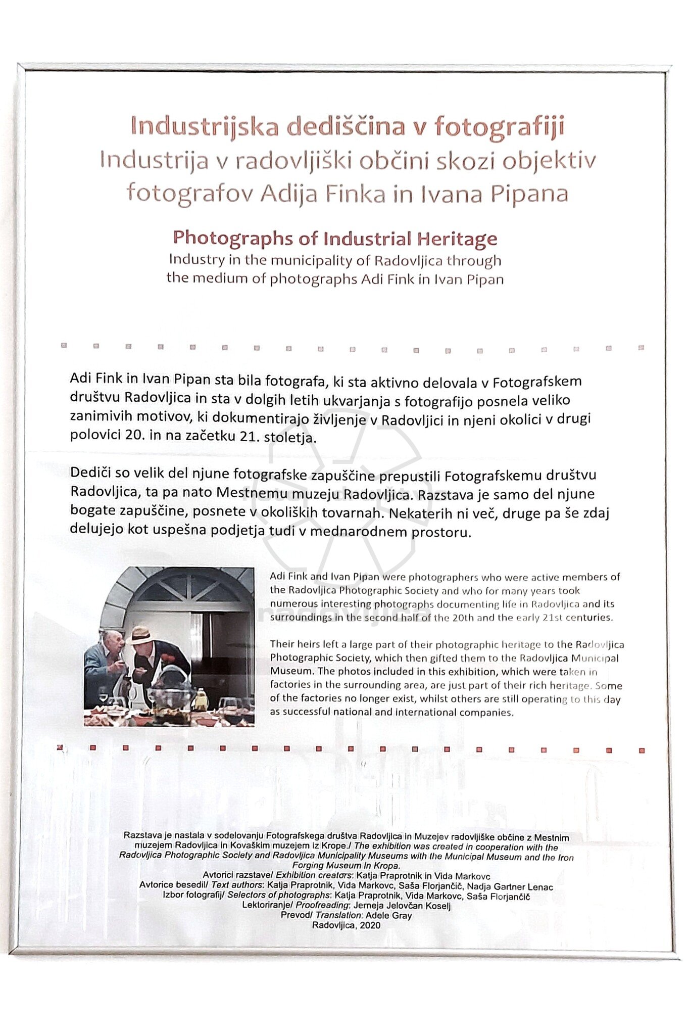 Dediči so veliki del njune fotografske zapuščine prepustili Fotografskemu društvu Radovljica, ta pa nato Mestnemu muzeju Radovljica. Razstava je samo del njune zapuščine, posnete v okoliških tovarnah. Nekaterih ni več, druge pa še zdaj delujejo kot uspešna podjetja tudi v mednarodnem prostoru.